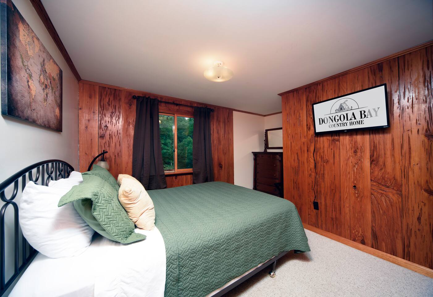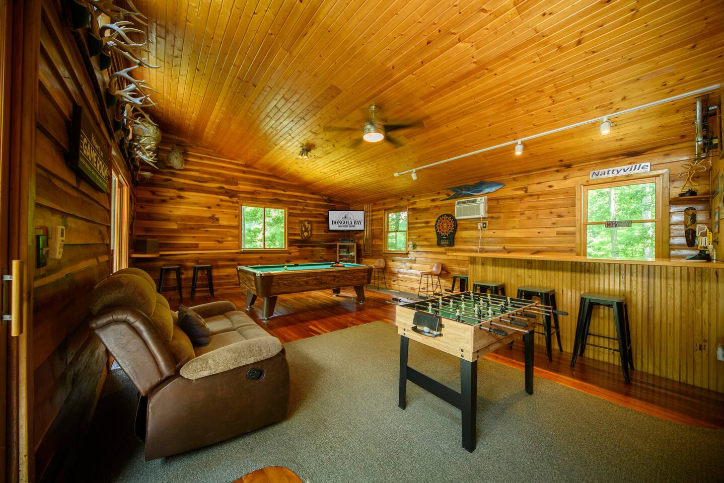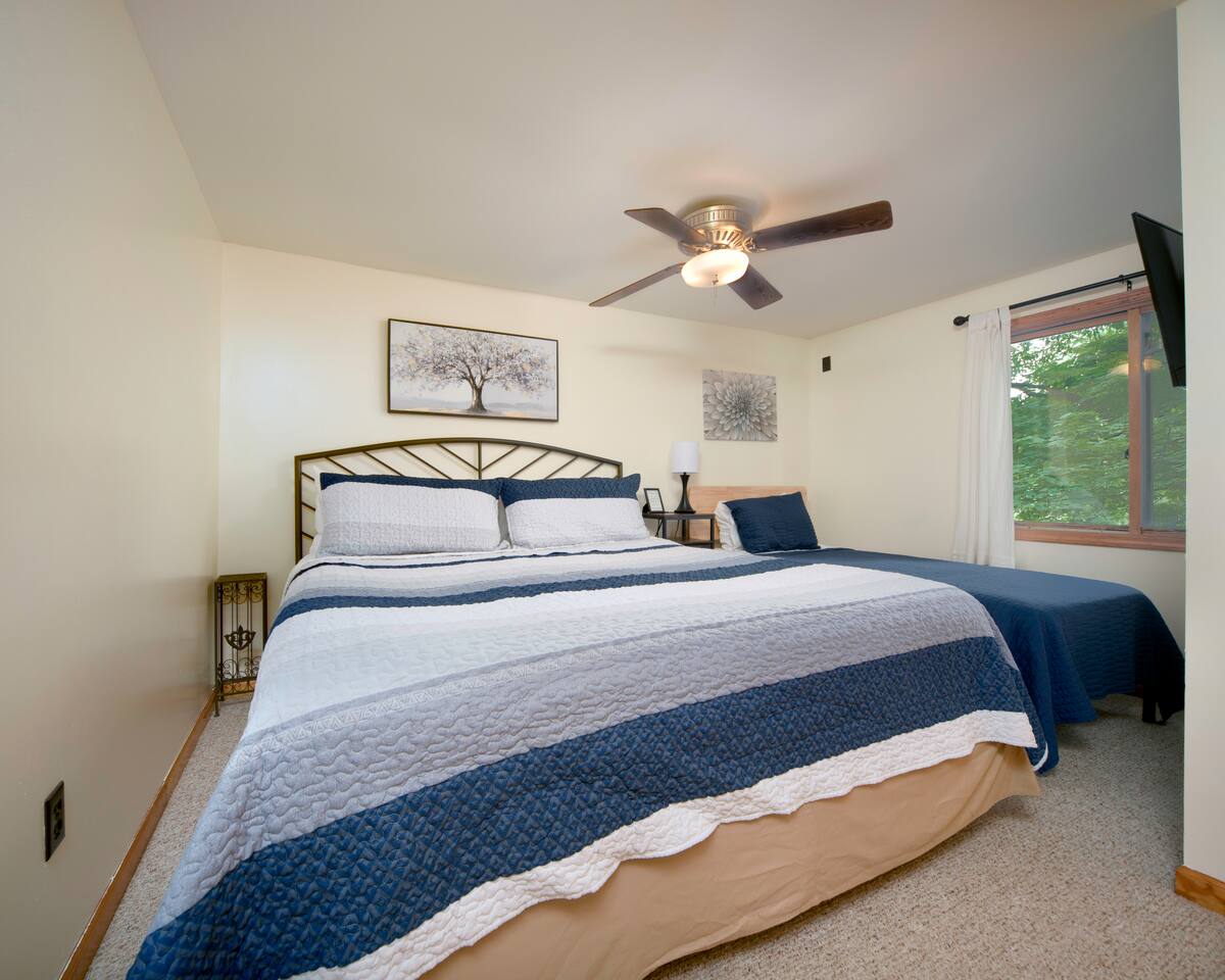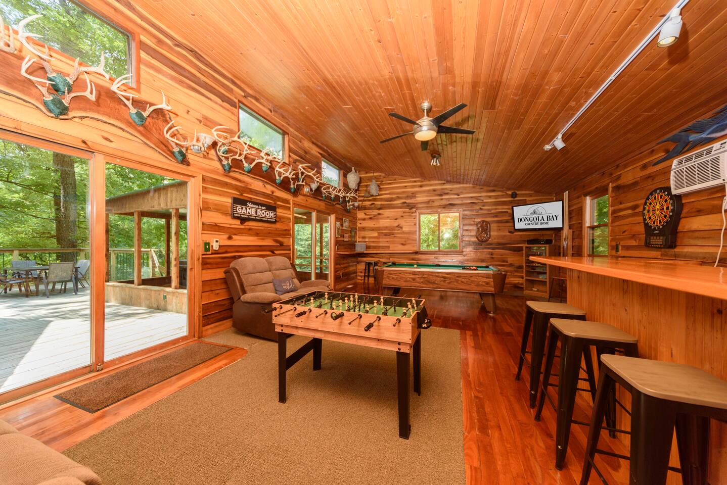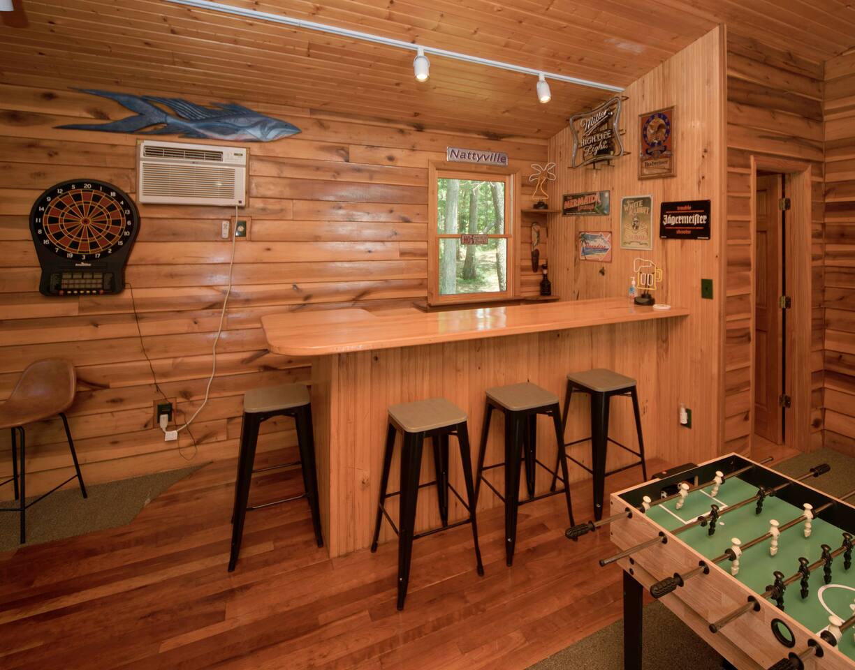 Explore Dongola Bay’s magic with us & Learn More Below! KEY FEATURES: ☀ 2,000 sq. ft. deck space for enjoying nature at its finest ☀ Great room with large TV, bar, and ample seating ☀️Large kitchen for gathering with your family around food and drinks ☀ Recreation room with pool table, foosball, large tv to watch your favorite sports game or your favorite movie and small bar. Great place for teenagers to have their own private space. ☀ Infant-friendly amenities: pack and play, highchair, and more ☀️2.5 acre pond for fishing, kayaking and beautiful views of nature. (there’s a good chance you’ll see deer on the pond dam) ☀️2 Kayaks to use on the pond ☀️ Beach area to play or relax ☀Disc Golf baskets to sharpen your skills ☀️Horseshoe Pit, can’t forget the classics ☀️Basketball court to challenge your family ☆☆ BEDROOMS ☆☆ Unwind in one of our four cozy bedrooms, providing comfortable sleeping arrangements for up to 10 guests. Additional sleeping options include a Sleeper Sofa, a Futon and 2 additional couches. Extra linens available in the closet. Bedroom 1: - Queen Bed - TV - Dresser Bedroom 2: - King and a Twin bed - TV - Closet Bedroom 3: - Queen and Twin bed - TV - Closet Bedroom 4 (upstairs master): - King-size Bed: - En Suite Private Jacuzzi Tub and shower: - Large Closet - Dedicated Vanity Area - TV - Views all around ☆☆ BATHROOMS ☆☆ Full Bath: - Located near in hall with bedrooms 1-3 - Dual sinks - Walk-in shower - Separate Jacuzzi tub Half Bath: - Convenient access from the living area and laundry room Upstairs Ensuite Bath: - Shower - Jacuzzi tub - Large closet Half Bath (Gameroom): - Located off the main house in the game room and convenient to the hot tub ☆☆ KITCHEN, DINING ☆☆ The fully equipped kitchen invites cooking adventures with a bartop island and a nearby TV for entertainment while you cook or hang out! With a gas stove, dishwasher, plenty of dishes, cups, pots, pans, and flatware, this kitchen ensures a seamless cooking and dining experience. The coffee bar offers regular strength coffee, non-dairy creamer, and sugar, providing the perfect start to your day! The dining area includes a large dining table for 8, perfect for family meals. ☆☆ LIVING ROOM ☆☆ Step into our cozy living room, the heart of our cabin retreat. Kick back on one of our 2 couches, our recliner or grab a seat at the laid-back bar area for some easygoing vibes. Large windows let in the natural beauty outside, creating a relaxed and tranquil setting. Need to catch up on work? We've got a small, no-fuss workspace for that. And of course, there's a TV for entertainment and an electric fireplace for that extra cabin warmth. This space is all about kicking off your shoes and making yourself at home. One of the couches is a Sleeper Sofa, which will accommodate 2 people. ☆☆ GAME ROOM ☆☆ Indulge in the ultimate hangout spot—our game room, just off the deck and steps from the hot tub. This cozy space provides a half bath, a nice bar area with a sink and mini-fridge, a dart board, a new TV, and a pool table. Easy access to the hot tub, bathroom, and bar area makes it the perfect hub for relaxation and entertainment! ☆☆ OUTSIDE SPACE ☆☆ Step outside where relaxation meets nature. Relax on the fenced deck, spanning 2,000 sq. ft., with beautiful views of the 2.5-acre pond. Near the pond you will find a firepit to gather around. This tranquil space is perfect for outdoor activities, family moments, and embracing the tranquility of Dongola. The covered hot tub area invites year-round indulgence, offering a secluded retreat to unwind and soak away your cares, surrounded by the beauty of Dongola Bay! ★☆ Book Dongola Bay Country Cabin Today & Let Us Take Care Of You! ☆★