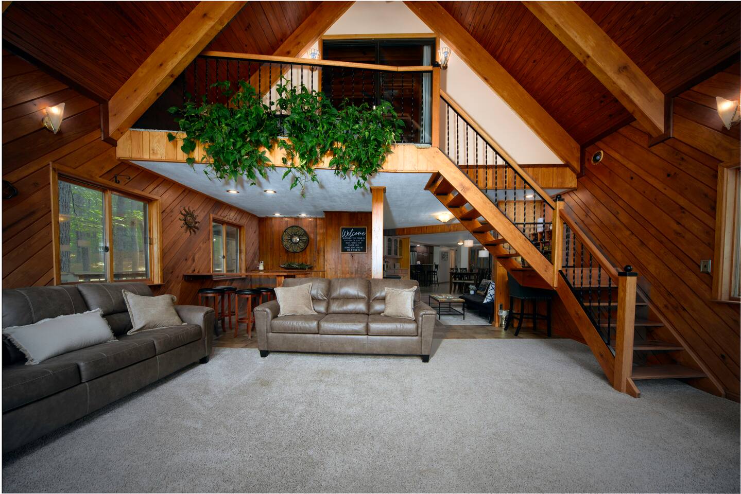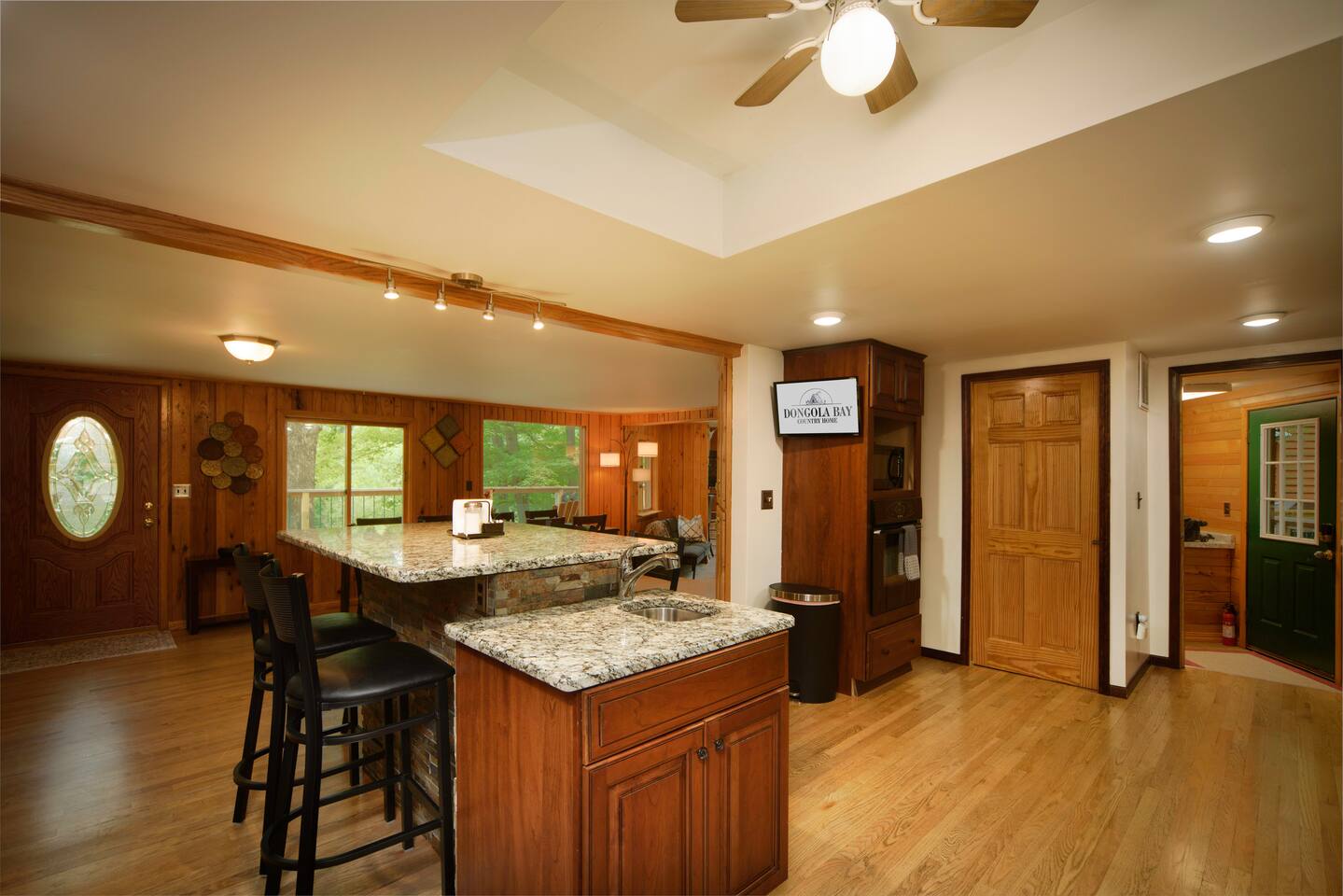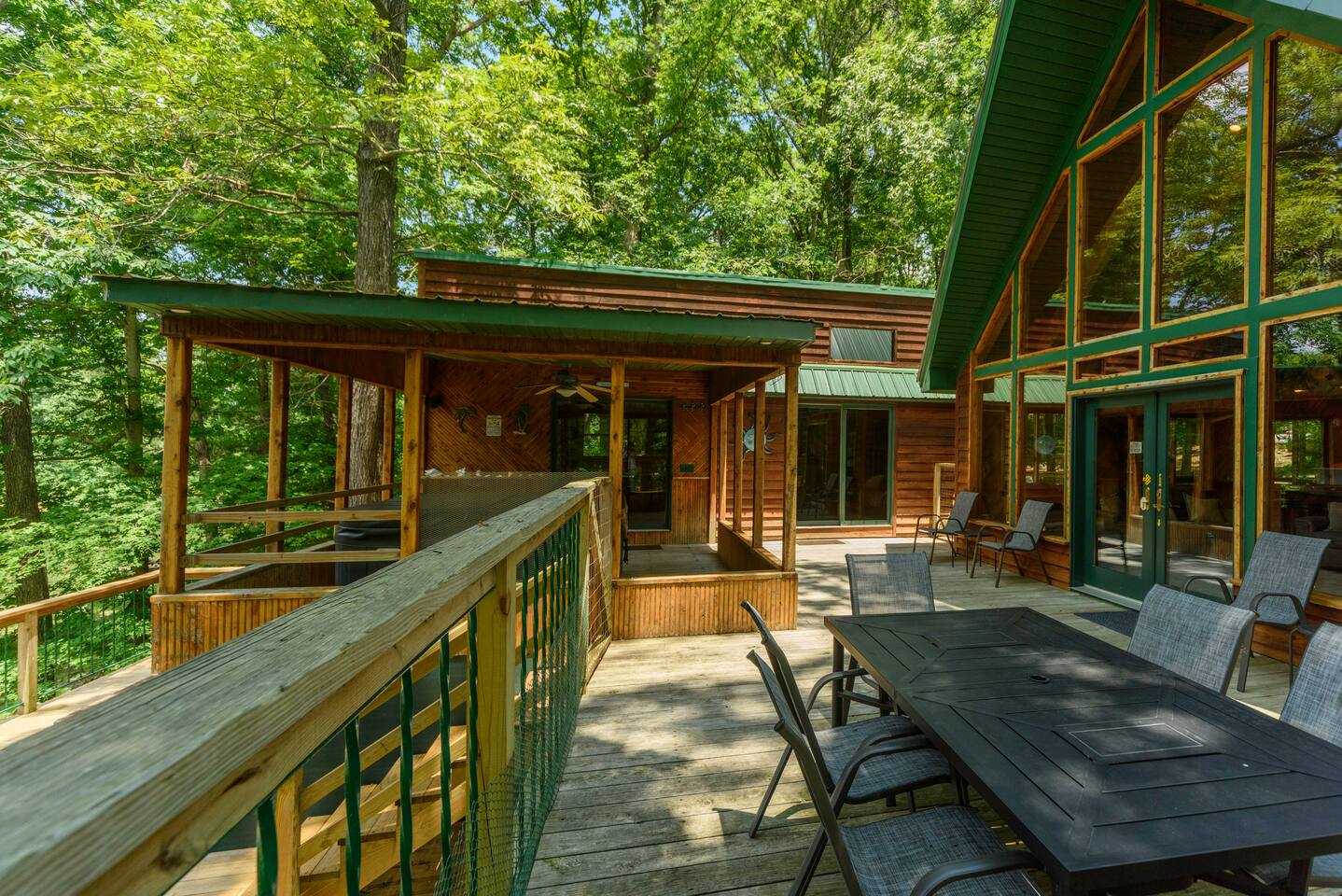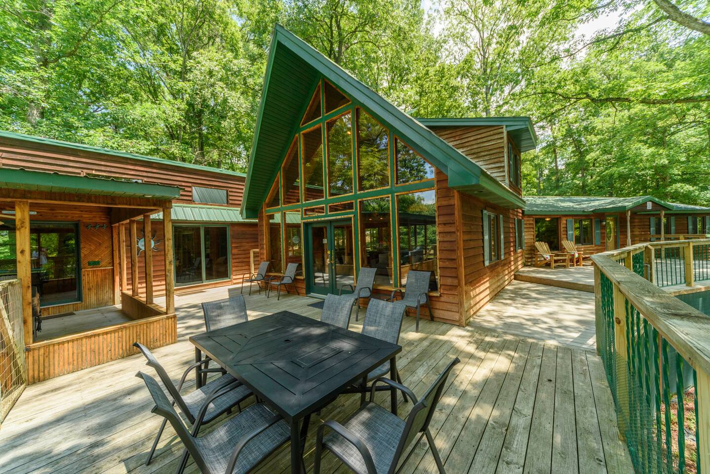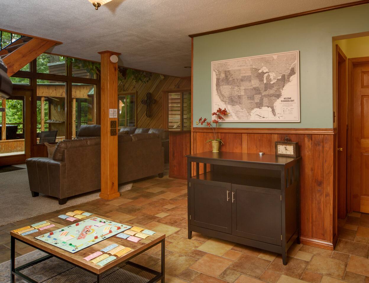 Explore Dongola Bay’s magic with us & Learn More Below! KEY FEATURES: ☀ 2,000 sq. ft. deck space for enjoying nature at its finest ☀ Great room with large TV, bar, and ample seating ☀️Large kitchen for gathering with your family around food and drinks ☀ Recreation room with pool table, foosball, large tv to watch your favorite sports game or your favorite movie and small bar. Great place for teenagers to have their own private space. ☀ Infant-friendly amenities: pack and play, highchair, and more ☀️2.5 acre pond for fishing, kayaking and beautiful views of nature. (there’s a good chance you’ll see deer on the pond dam) ☀️2 Kayaks to use on the pond ☀️ Beach area to play or relax ☀Disc Golf baskets to sharpen your skills ☀️Horseshoe Pit, can’t forget the classics ☀️Basketball court to challenge your family ☆☆ BEDROOMS ☆☆ Unwind in one of our four cozy bedrooms, providing comfortable sleeping arrangements for up to 10 guests. Additional sleeping options include a Sleeper Sofa, a Futon and 2 additional couches. Extra linens available in the closet. Bedroom 1: - Queen Bed - TV - Dresser Bedroom 2: - King and a Twin bed - TV - Closet Bedroom 3: - Queen and Twin bed - TV - Closet Bedroom 4 (upstairs master): - King-size Bed: - En Suite Private Jacuzzi Tub and shower: - Large Closet - Dedicated Vanity Area - TV - Views all around ☆☆ BATHROOMS ☆☆ Full Bath: - Located near in hall with bedrooms 1-3 - Dual sinks - Walk-in shower - Separate Jacuzzi tub Half Bath: - Convenient access from the living area and laundry room Upstairs Ensuite Bath: - Shower - Jacuzzi tub - Large closet Half Bath (Gameroom): - Located off the main house in the game room and convenient to the hot tub ☆☆ KITCHEN, DINING ☆☆ The fully equipped kitchen invites cooking adventures with a bartop island and a nearby TV for entertainment while you cook or hang out! With a gas stove, dishwasher, plenty of dishes, cups, pots, pans, and flatware, this kitchen ensures a seamless cooking and dining experience. The coffee bar offers regular strength coffee, non-dairy creamer, and sugar, providing the perfect start to your day! The dining area includes a large dining table for 8, perfect for family meals. ☆☆ LIVING ROOM ☆☆ Step into our cozy living room, the heart of our cabin retreat. Kick back on one of our 2 couches, our recliner or grab a seat at the laid-back bar area for some easygoing vibes. Large windows let in the natural beauty outside, creating a relaxed and tranquil setting. Need to catch up on work? We've got a small, no-fuss workspace for that. And of course, there's a TV for entertainment and an electric fireplace for that extra cabin warmth. This space is all about kicking off your shoes and making yourself at home. One of the couches is a Sleeper Sofa, which will accommodate 2 people. ☆☆ GAME ROOM ☆☆ Indulge in the ultimate hangout spot—our game room, just off the deck and steps from the hot tub. This cozy space provides a half bath, a nice bar area with a sink and mini-fridge, a dart board, a new TV, and a pool table. Easy access to the hot tub, bathroom, and bar area makes it the perfect hub for relaxation and entertainment! ☆☆ OUTSIDE SPACE ☆☆ Step outside where relaxation meets nature. Relax on the fenced deck, spanning 2,000 sq. ft., with beautiful views of the 2.5-acre pond. Near the pond you will find a firepit to gather around. This tranquil space is perfect for outdoor activities, family moments, and embracing the tranquility of Dongola. The covered hot tub area invites year-round indulgence, offering a secluded retreat to unwind and soak away your cares, surrounded by the beauty of Dongola Bay! ★☆ Book Dongola Bay Country Cabin Today & Let Us Take Care Of You! ☆★