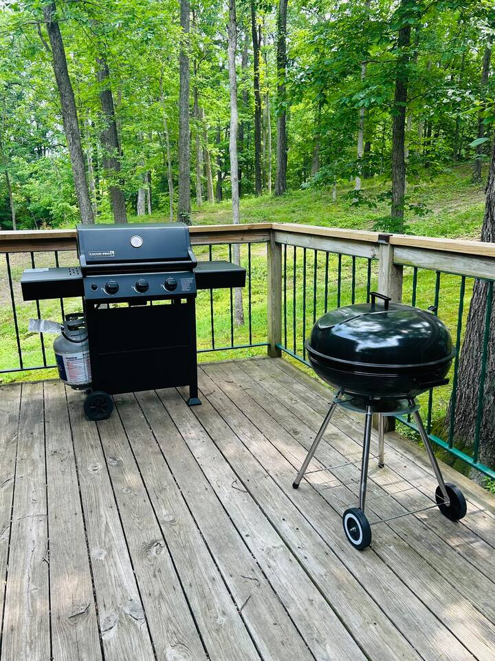 Our cabin sits in a private setting in the country with beautiful views. Dongola is a small town that is 5 miles away that has all your basic needs. Beyond that is the town of Anna which is 11 miles away. Anna has lots of options for eating, shopping, etc. If you are looking for attractions, Southern Illinois has lots of options: 11 Wineries within 30 miles Shawnee Bluffs Ziplining - 14 miles Tunnel Hill Bike Trial (45 miles of trails) - 15 miles Ferne Clyffe State Park - 18 miles Giant City State Park - 21 miles Makanda Boardwalk - 23 miles Bald Knob Cross - 27 miles Crab Orchard National Wildlife Refuge - 28miles Dixon Springs State Park - 28 miles Fort Massac State Park - 36 miles Bell Smith Springs - 39 miles Little Egypt Off-road Park - 39 miles Rend Lake Golf Course - 54 miles Garden of Gods - 60 miles Cave In Rock - 65 miles